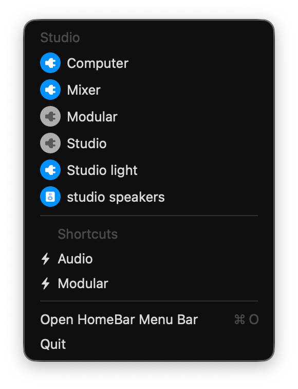 - Menu bar access to all your HomeKit devices